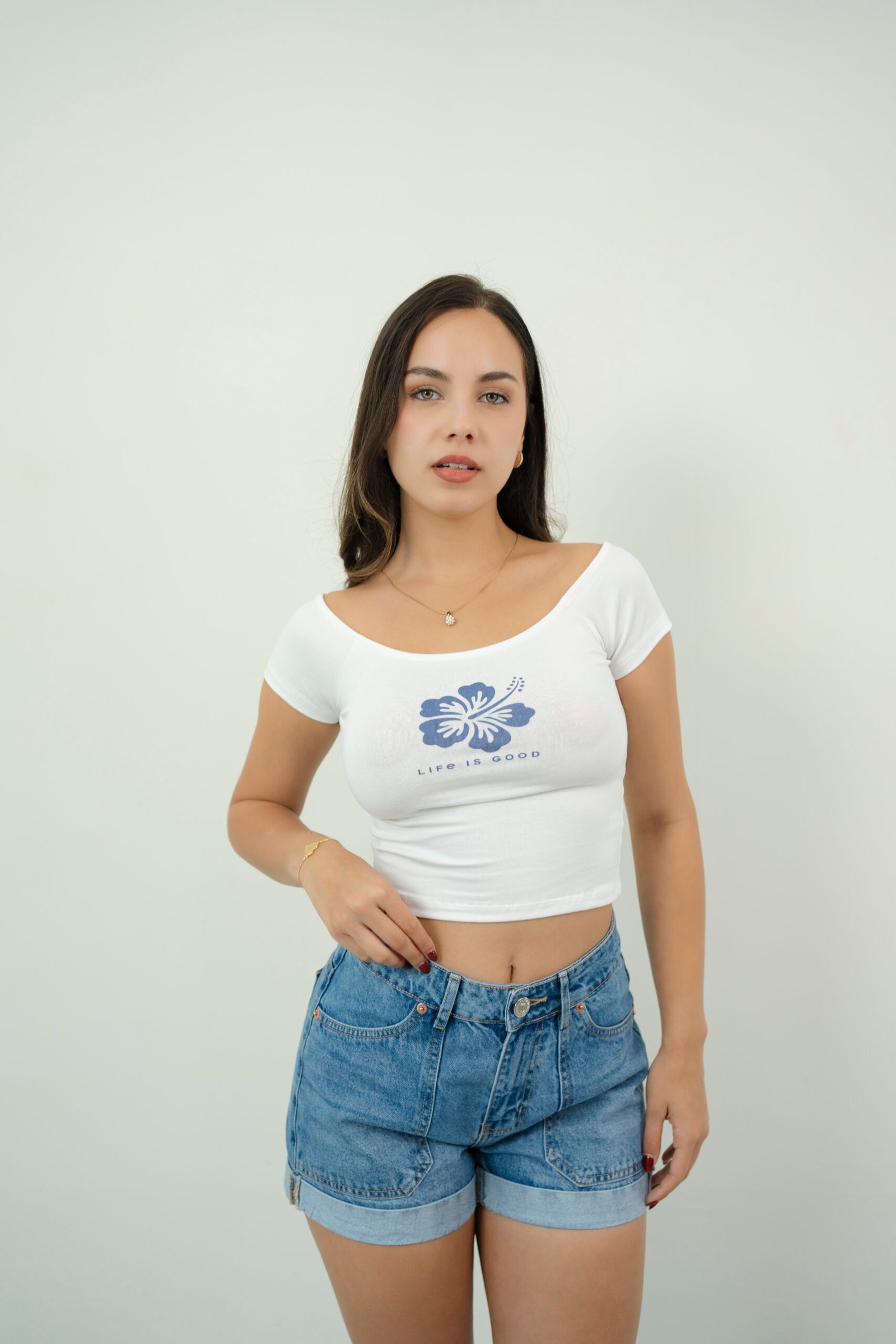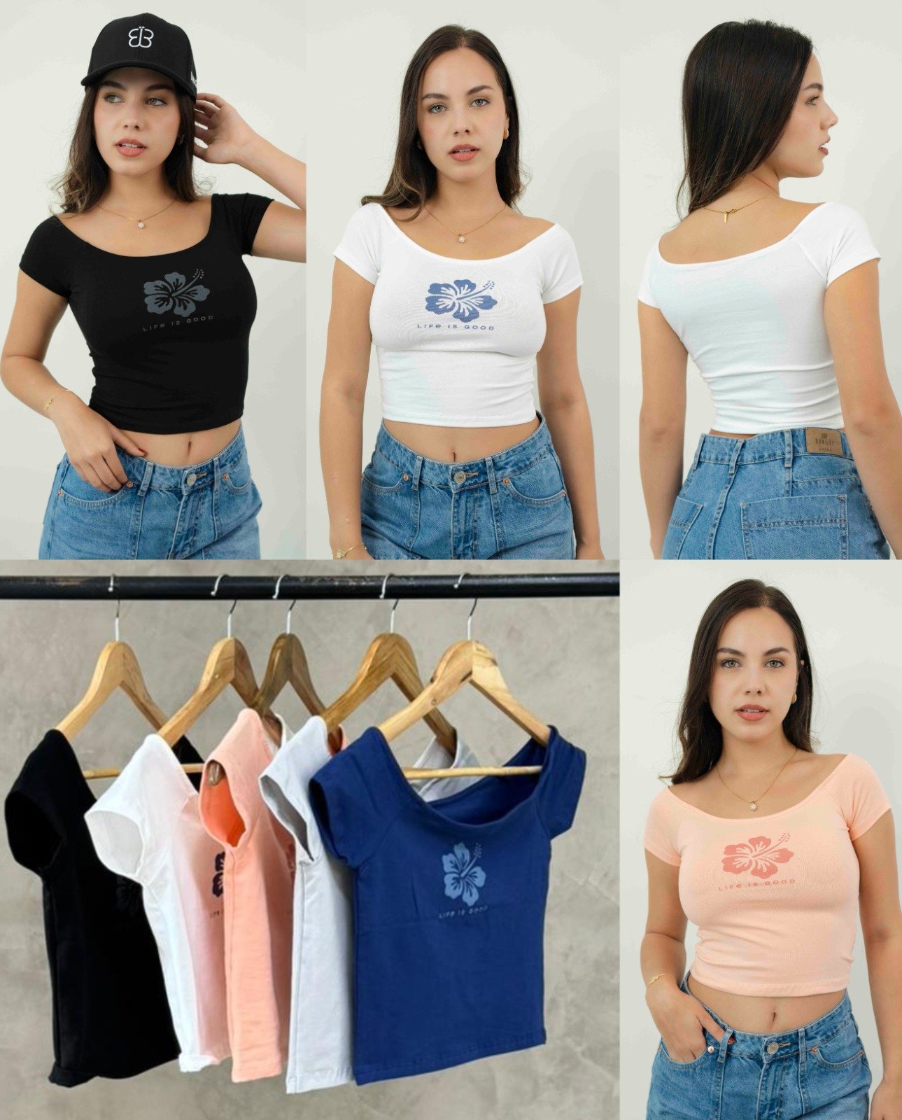 ยกLleva la vibra del verano siempre contigo! โจ Este Crop Top es el equilibrio perfecto entre comodidad y estilo.El Diseรฑo Luce un hermoso hibisco frontal con la frase ยซLife is Goodยป, ideal para un look relajado pero con muchรญsima personalidad. ๐