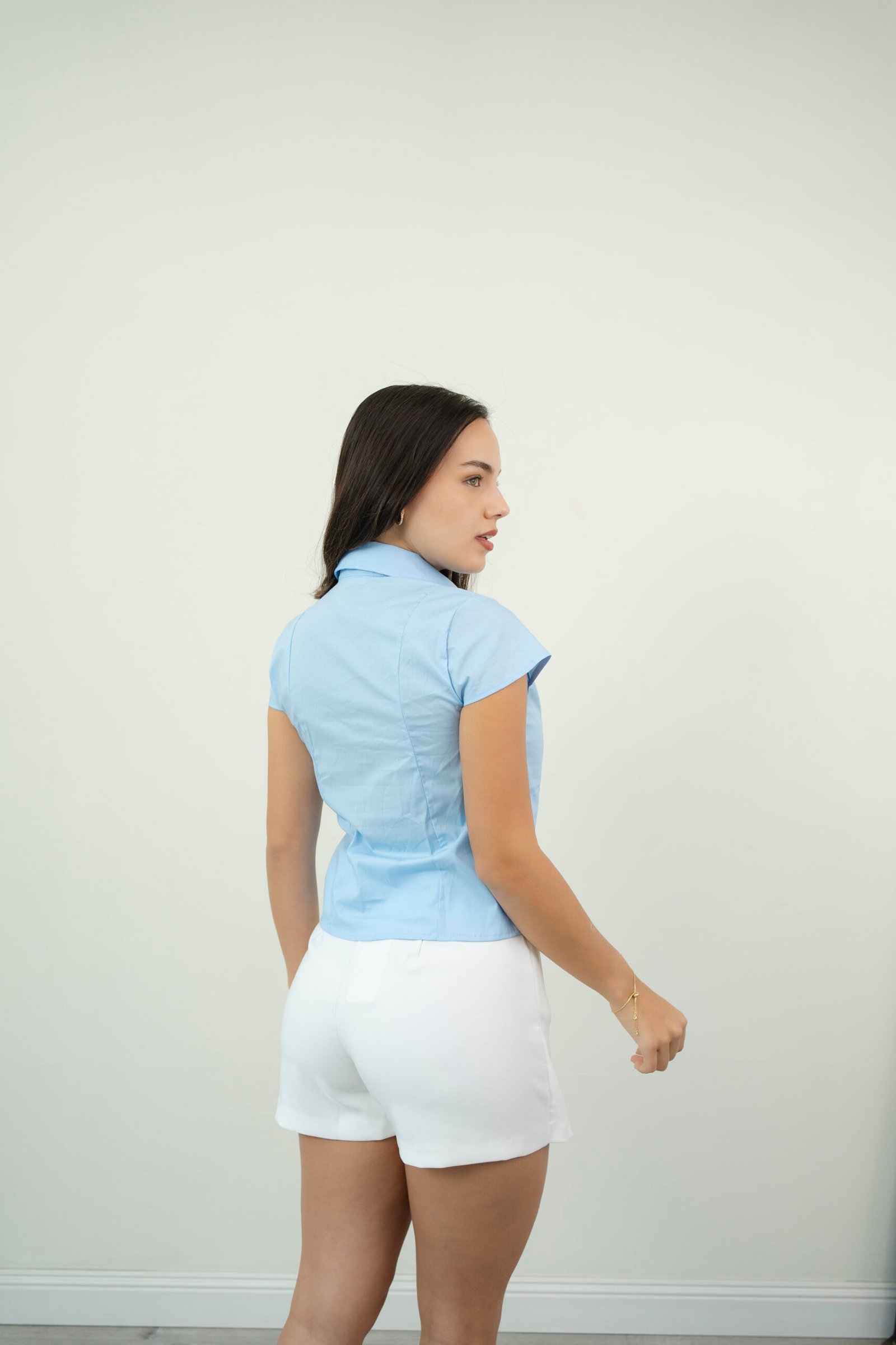 Blusa en popelina, ligera y fresca que estiliza la silueta. Diseño slim fit con mangas delicadas, ideal para un look limpio y versátil. Fit: AjustadoMaterial: PopelinaModelo: Usa talla S – Estatura 1.68