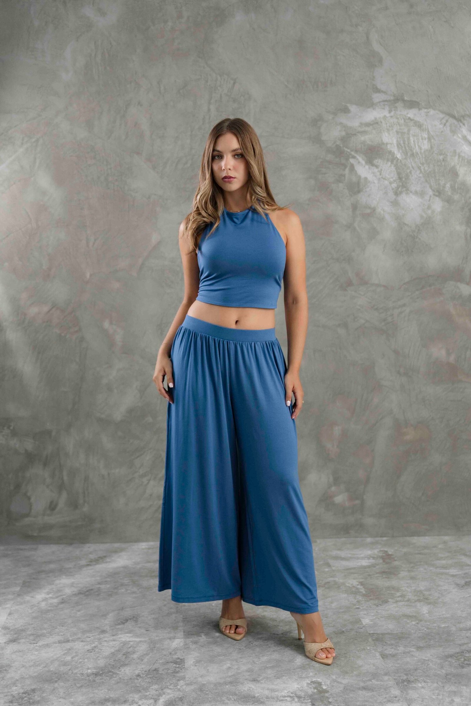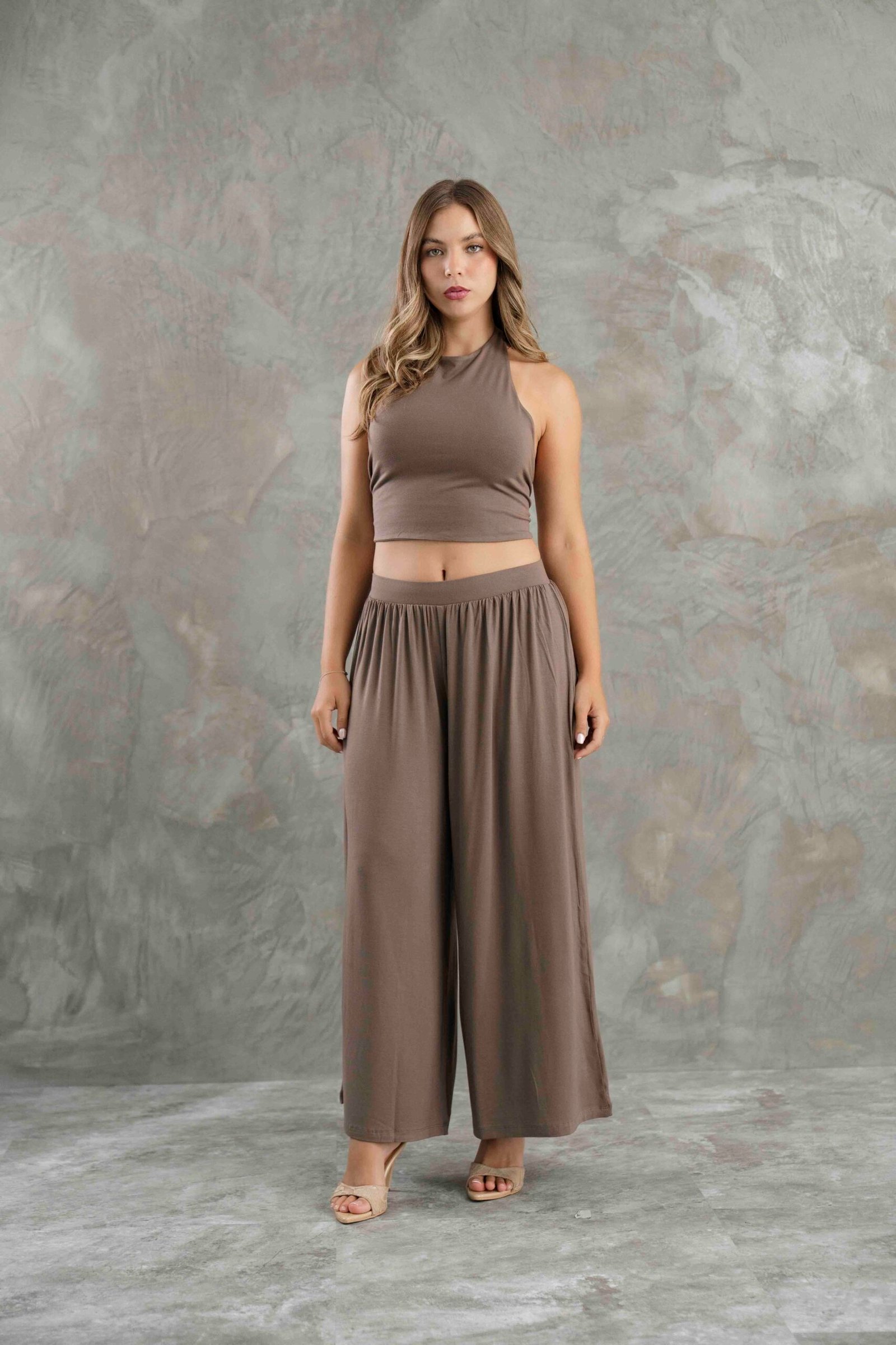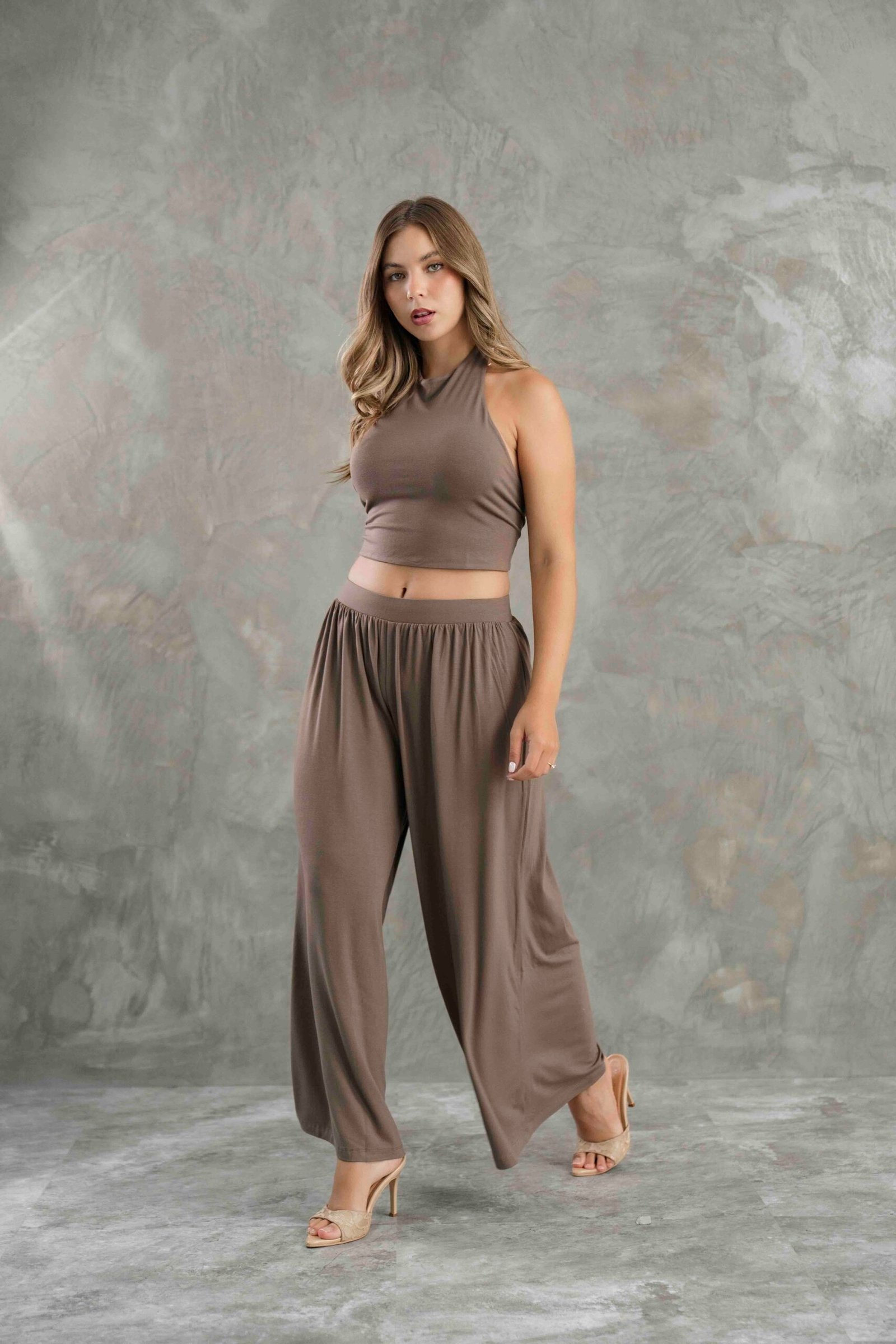 Conjunto de viscosa. Tallas: M, S · Colores: Azul, Crema, Marrón, Negro, Plomo.