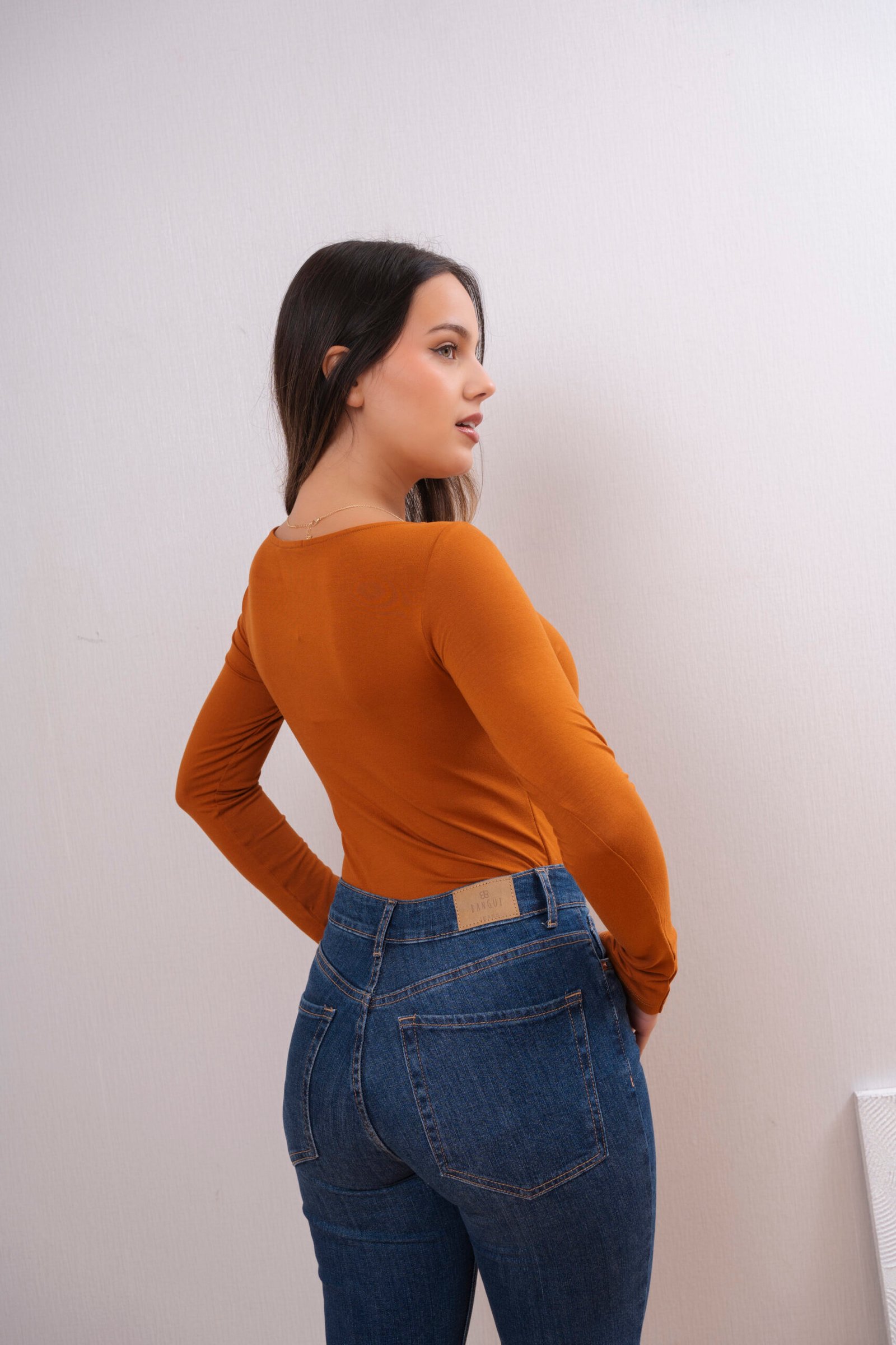 Polo en tela viscosa, suave y fresco con fit cómodo que se adapta al cuerpo. Diseño de manga larga con detalle cut-out en el escote que aporta un toque femenino y moderno. Fit: AjustadoMaterial: ViscosaModelo: Usa talla S – Estatura 1.68